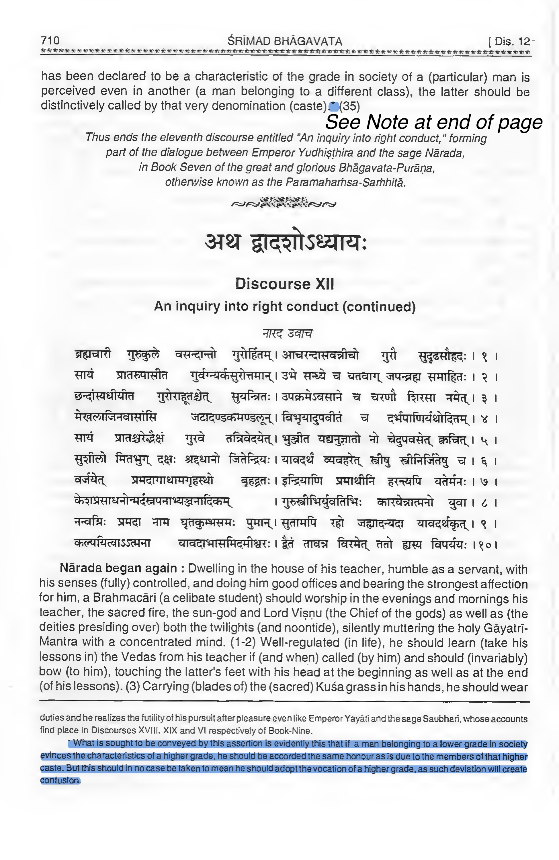 A recent speech by Mr. N. N. Ghose at the Hare Anniversary Meeting (1904) is important as bearing on the vexed question of Varṇa in India, which the Christian will not understand. He said:— “The division into Varṇas cannot be understood by any one who does not realise that all Hindu institutions were inspired by one principle. It was not political expediency, not social convenience, not the happiness of the greatest number, not the development of fighting capacity. Material good was a subordinate end. The ruling principle was the spiritual evolution of man, the perfection of character, realisation of the self [and God]. For the purposes of spiritual evolution, a separation of classes and occupations was considered necessary [i.e., came into being by the Will of God]. The Brahmans, for instance, were to be devoted to religious work and meditation and the function of teaching, and so on with other Varṇas. It was no mere division of labour that was thus accomplished [by the institution instituted by God Himself]. It was an institution meant to prevent the spiritual degradation of men by the mixing up of finer and courser spiritual natures. The four leading Varṇas were marked off from each other by characteristics that could not be mistaken. All experience shows that men are not equally endowed on the spiritual side. Then it has to be remembered that the law of Karma was one of the root conceptions of the Varṇa-system. Men were born into a particular Varṇa by their Karma, [and final Guṇa-disposition] of a previous life. Men of lower Varṇas could go up to the higher in another life [or attain liberation (Moksha) regardless of Varṇa] if they had made spiritual progress enough in this life. No mere intellectual qualifications or material conditions [nor devotion to God on which Varṇa has no bearing (a devotee by definition would never demand to change Varṇa in the current body, knowing the Will of God)] would raise a man to a higher Varṇa. Each man was born into the Varṇa for which he was destined by his own susceptibilities [Guṇa-disposition accumulated in previous births]. There was room enough for [spiritual] advancement [and perfection] and usefulness [historically] within his own Varṇa, [with devotion to God and spiritual perfection knowing no Varṇa bounds]. But he was not to be permitted to spoil his own breed by marrying in a lower spiritual plane [i.e., Varṇa], or spoil the breed of a higher Varṇa by marrying on a higher plane. … Not muscles and intellect, not happiness, not political ascendancy, but spiritual perfection and purity were the only end.” The warning voice against promiscuous intercourse and admixture of Varṇas is found in the Bhagavad-Gita, verse I.40 to I.44 [further emphasized by Lord Krishna in Bhagavad Gita verse 3.24]; which may be read by all the devotees of this Holy Bible, and laid to heart before venturing to anathematize the Varṇa-institution of India.[6]